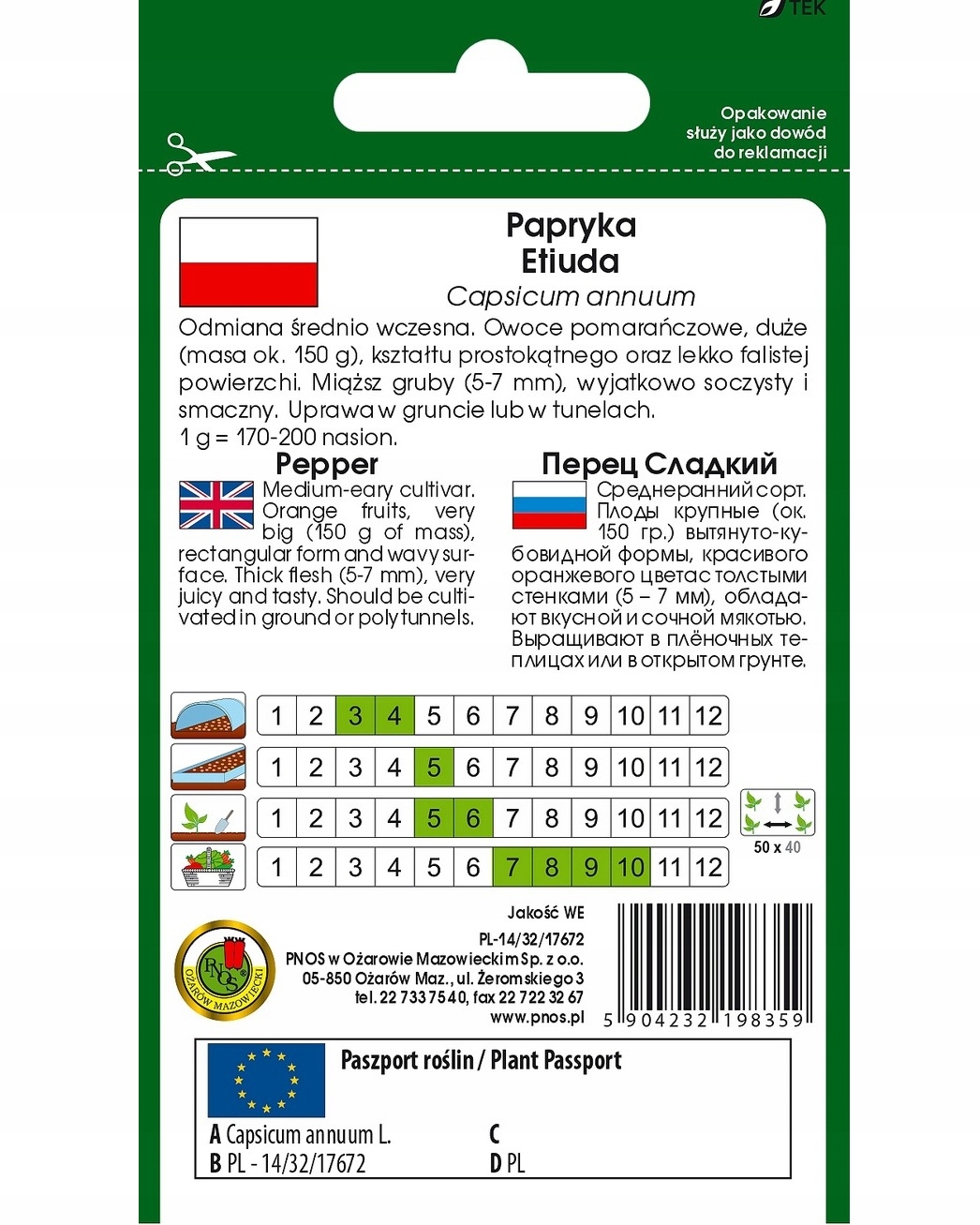 ▶ Termin wysiewu: I dekada I, I dekada IV.