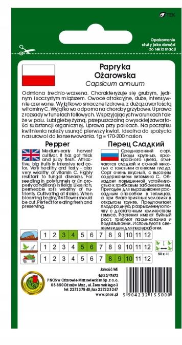 Papryka Ożarowska nasiona 0,5 g średnio wczesna plenna bogata w witaminę C